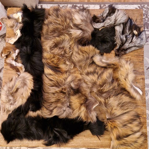 Ketun häntä ja turkispalat.