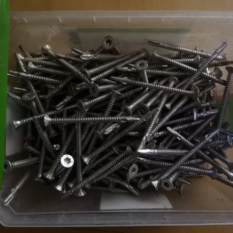 Myydään uusi täysi 250 kappaleen paketti sähkösinkittyjä yleisruuveja. Koko 6 x 90 mm.