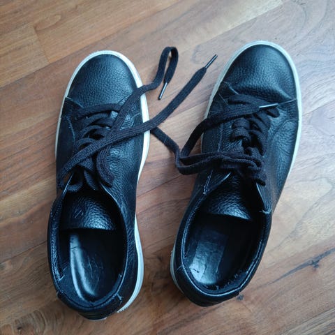 Myydään nupukkinahkaiset eccon tennarit. Olleet pitkään käytössä, kangas kulunut hieman sisältä (ei saa kuvaa). Pohjat hieman kuluneet kantapäistä (näkyy kuvassa).