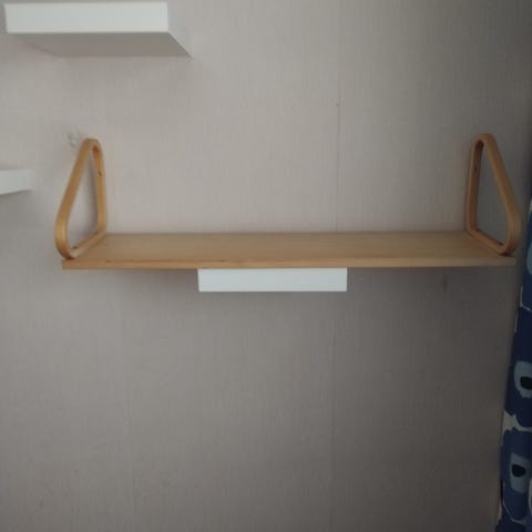 Artek tyylinen valkoinen seinähylly. Joissain kohdassa pinta halkeillut katso kuvat. Ruuvikiinnitys.