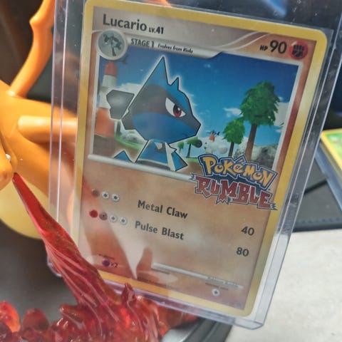 Pokémon Lucario gx(shiny), lycanrock vmax(rainbow),shelleder ja chansey.