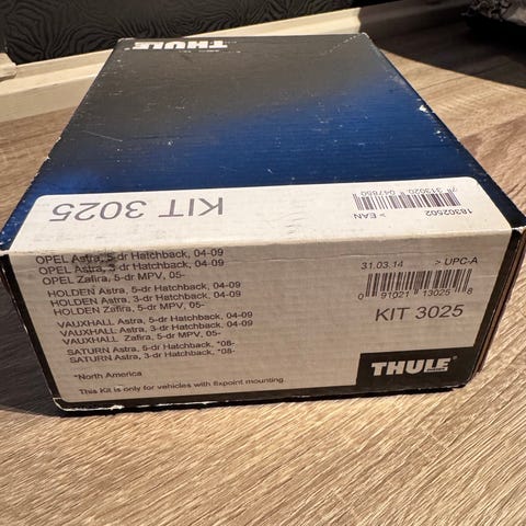 Thule Kit 3090 on asennussarja, joka sopii seuraaviin autoihin: Opel Astra 5-ovinen hatchback 2010 lähtien, Vauxhall Astra 5-ovinen hatchback 2010 lähtien, Holden Astra 5-ovinen hatchback 2010 lähtien, Opel Meriva 5-ovinen MPV 2010 lähtien, Vauxhall Meriva 5-ovinen MPV 2010 lähtien. Sarja sisältää osat kattotelineen asentamiseen näihin automalleihin. ! Kaikki löytyy avaimet myös ja hyvässä kunnossa oleva musta malliltaan/ kiinnitys katossa olevaan uraan koukuilla!olleet Opel mervassa vuosimalli 15