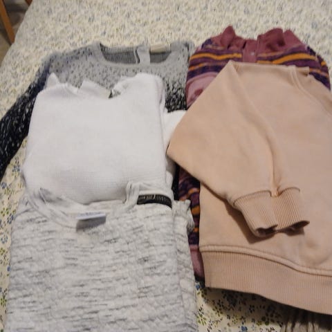 Bogi, Finlayson ja Mayotal kirjavia tytöille tarkoitettuja vaatteita, koko 92. Setti sisältää monivärisiä, kirjava-kuvioituja vaatteita, jotka sopivat lapsen käyttöön.