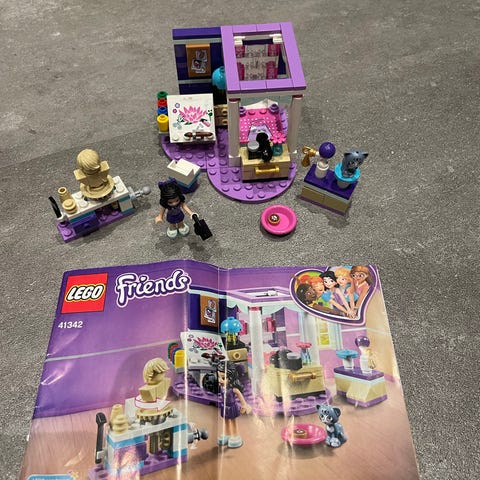 LEGO Friends Olivian luksusmakuuhuone. Kaikki palat tallessa, mutta Olivian alaosa korvattu toisella. Ohjeet mukana.