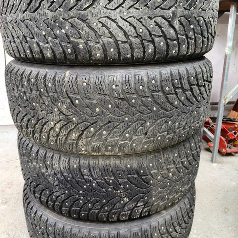 2kpl nokia Hakkapeliitta 8 suv paistettu -15 vuonna ja 2kpl nexen winguard paistettu-16vuonna, pintaa n.6mm. h.120e asennettuna ja tasapainotettuna.