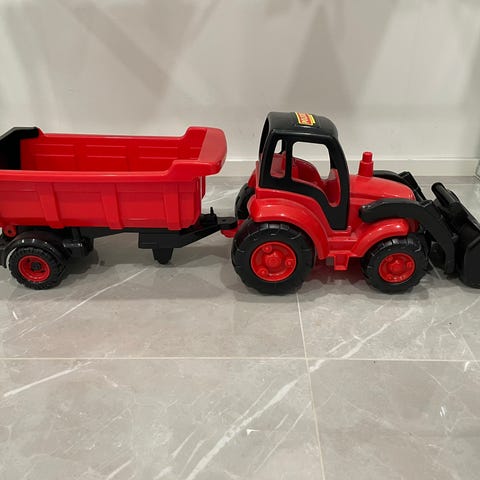 Harvoin saatavilla,Lasten leikkeihin, hyväkuntoinen traktori peräkärry yhdistelmä