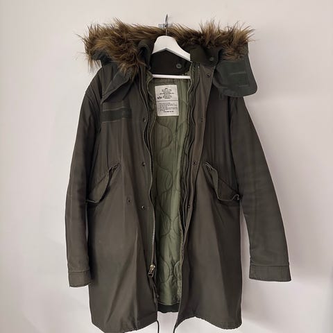 Myynnissä Alpha Industries parkatakki joka on suunniteltu armeijan käyttöön kylmissä olosuhteissa.