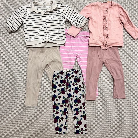 Pop vaatesetti, koot 86-98. Kunto vaihetelee, osa kerran käytetty, osa enemmän. Nopeasti katsoen löysin kahdesta paidasta tahrat, joista kuvat.