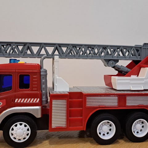 Plancity puinen paloasema ja punainen metallinen auto, hallin ovi aukeaa. Siisti kunto.