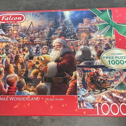 Falcon Christmas Wonderland 1000 palan palapeli sisältää kaksi 2 jouluteemaista 1000 palan palapeliä. Avaamaton paketti.