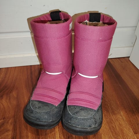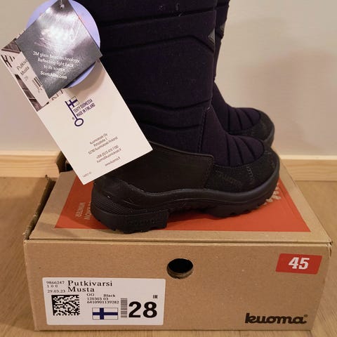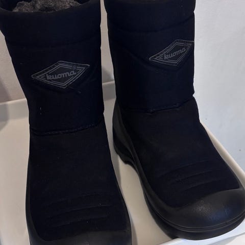Kuoman viime talven paljasjalkaystävällisempi malli. Käytetty 3 kk ajan viime talvena. Ehjät ja yleisilme siisti. Vahvikkeet sisällä kantapään takana, joten villa ei ole kulunut puhki, kuten usein Kuomissa.