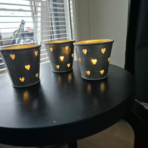 Galvanoidusta teräsputkesta valmistetut tuikkupidikkeet, 11, 17 ja 25cm ja alusta 25cm. Toimitus vain nouto, maksu mobilepay tai käteinen (tasaraha). Halutessaan saa mukaan 6 kpl tuoksuvia tuikkuja sekä kuvausta varten sytytetyt tuikut.