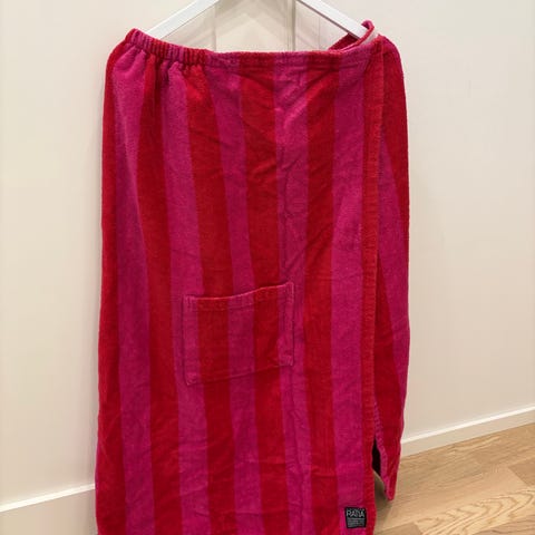 Vyötärölle kiedottava punainen froteinen saunapyyhe. Kokoa xl/xxl, tarrakiinnitys. Ollut vähäisellä käytöllä. Nouto tai tori diili.