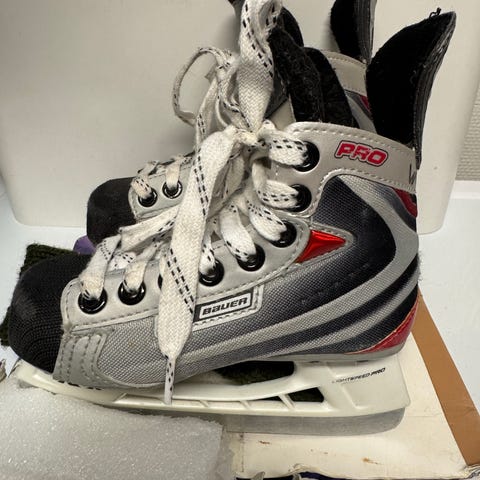 Myydään kohtuukuntoiset mustat lasten Bauer Vapor & Nike Motion V -luistimet. Kokomerkintää ei löytynyt, mutta pohjallisen pituuden perusteella noin 28. Sisämitta noin 17,5 cm.