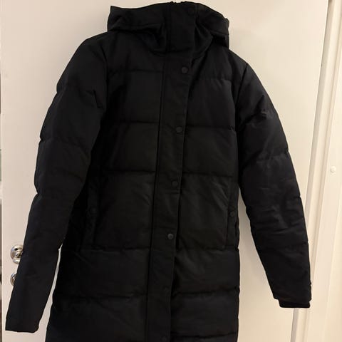 Everestin musta untuvatakki. Vetoketjun vedin mennyt poikki, ei vaikuta vetoketjun toimivuuteen. Muuten täysin ehjä ja siisti takki. Koko 34. Savuton ja lemmikitön talous.
