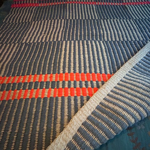 Kaksi Ritva Puotilan suunnittelemaa Woodnotes City -paperinarumattoa. Matot ympärikantattuja. Hinta per kpl. Molemmat matot pesun jäljiltä. Nouto.