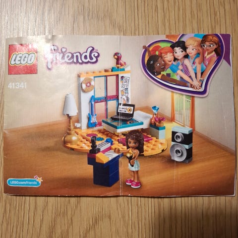 LEGO Friends 41327 Mian makuuhuone. Kaikki palat tallessa, mutta skeittilaudasta puuttuu tarra.
