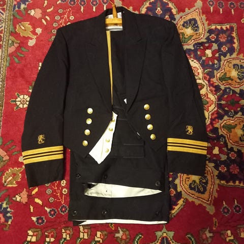 Laivaston kapteeniluutnantin virkapäällystakki ja housut, koko XL