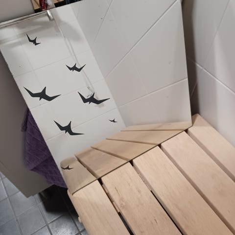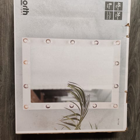Seinälle laitettava peili, yläosassa kello, kahdessa kohdassa halkeama. Korkeus 149, leveys 72cm