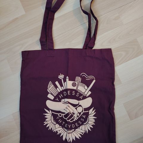 Kassi on uudenveroinen. Mummon tekemä juhlamokkapusseista. Korkeus 25 cm, leveys 31 cm ja syvyys 19 cm. Olkahihnojen pituus 74 cm. Katso myös muut kohteeni. Nouto Tampereen keskustasta.