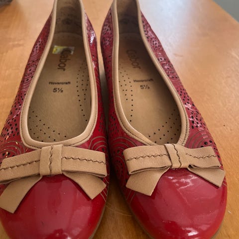 Gabor ballerinat, koko 38, valkoinen väri. Nahkamateriaali ja koristeellinen kukkakuvio edessä. Naisten malli.