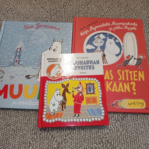 Tove Janssonin ihana Suuri Muumikirja. Kirja lähes uudenveroinen. Kannen reunassa pieni painauma (kuva 5), muutoin moitteeton.