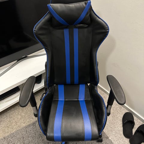 Pelituoli, musta väri. Verhoilu keinonahkaa. Säädettävät käsinojat ja niskatyyny. Sopii pelaamiseen ja työpöytäkäyttöön.