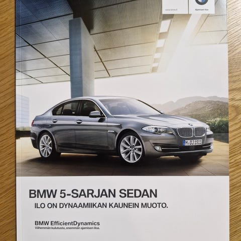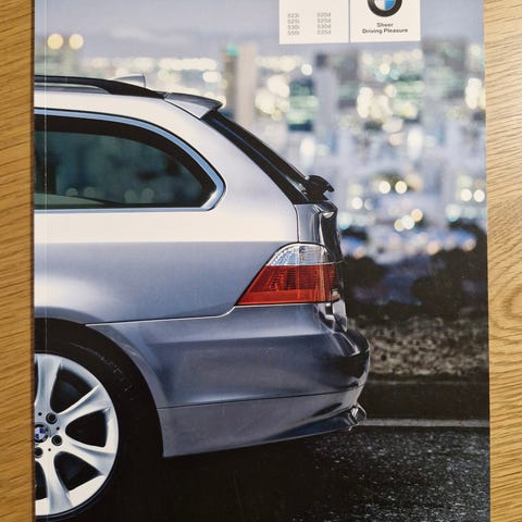 BMW 5-sarjan esite Pohjois-Amerikasta. Laadukas, kanttikylkinen painos. Herkkä kartonkilaatu; kansilehdissä jonkin verran pieniä jälkiä varastoinnista.