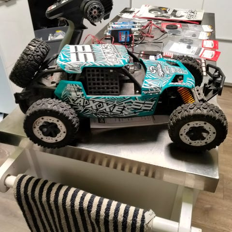 Tästä nopea ja ketterä traxxas e revo 1/16 vxl brushless rc auto. Autossa ei mitään vikoja. Servo, akselit ja moottori uusittu. Kaksi lisäakkua ja liitin, jolla saa kaksi akkua kinnitettyä samaan aikaan. Lisäksi varaosia ja työkaluja. Auto kulkee 80 km/h ja neliveto.