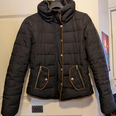 Naisten XS kokoinen kevytuntuvatakki karvakauluksella. Liki käyttämätön.