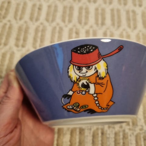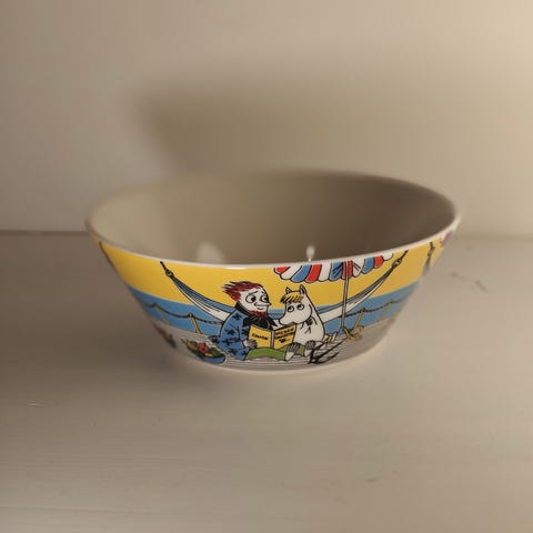 Arabia Muumi kulho, niiskuneiti ja runoilija. Täysin ehjä ja lasite siisti. Ei tarraa.