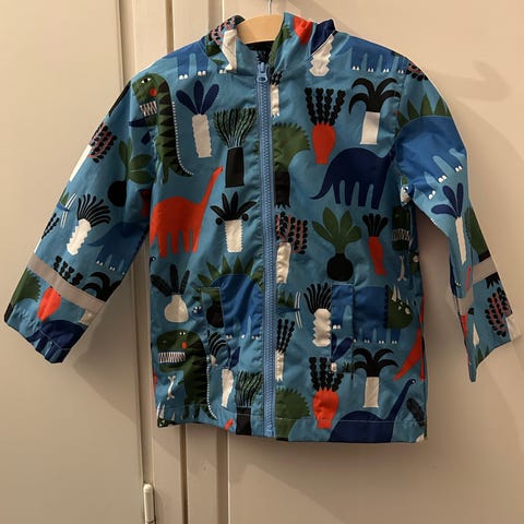Myydään hyväkuntoinen Marimekon/Marimekko , Arvoitus 2 ,vettähylkivä lasten/tyttöjen takki kirjava/valkoinen.