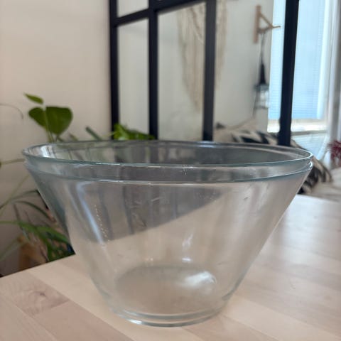 Myydään kaksi lasista liilaa ikean kulhoa. Mitat näkyy kuvissa.