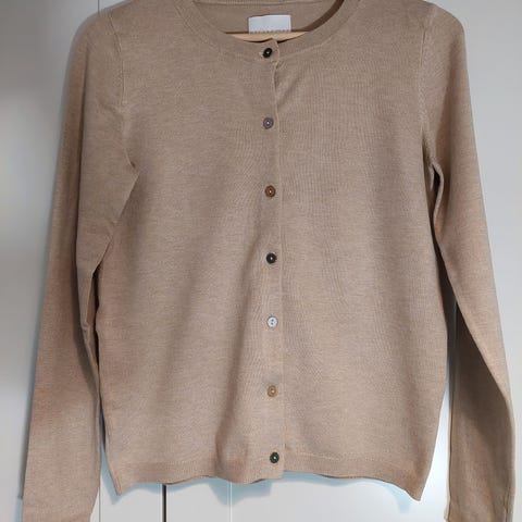 Koko S, mutta tosi venyvää neulosta. Veikkaan, että ainakin osa on alpakkaa tmv., ja osa polyesteria. Materiaali- ja kokolappu leikattu pois. Moitteeton kunto. Kaulusta saa aseteltua miten itse haluaa.