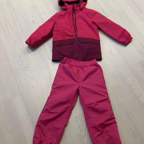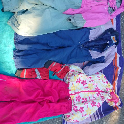 Hyväkuntoinen vaatesetti välikauteen. Verkkatakki (5-6v), toppaliivi 8v, Välikausitakki fleecevuorella 110cm, vuoreton softshell takki 110cm ja Everest välikausihousut verkkovuorella 110cm