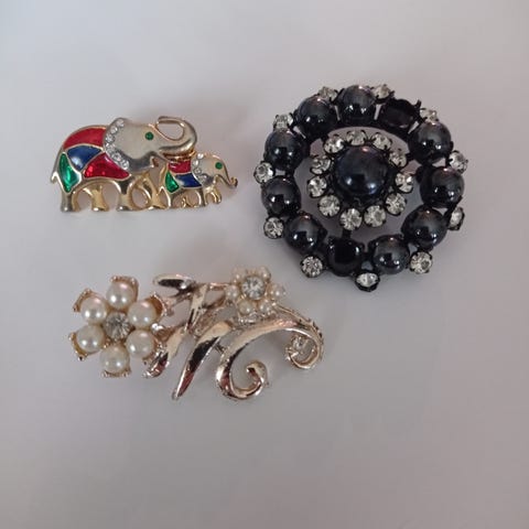 10 erilaista kevyttä, metallista rintakorua.
