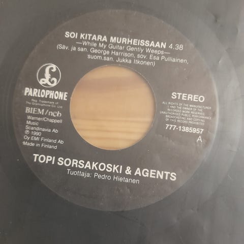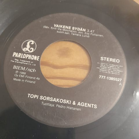 Myyn hyväkubtoisen vinyylisinkun, vuodelta 1988. A. Topi & Agents: On kesäyö. B. J. Karjalainen: Viimeinen laulu.