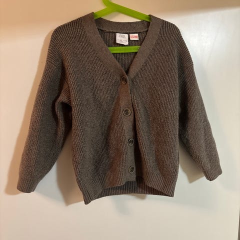 Söpö erikoinen lasten neuletakki, koko 4 v, 104 110 Väri ruskea. Takissa on vetoketju ja hupullinen malli. Unisex-malli, sopii sekä tytöille että pojille.