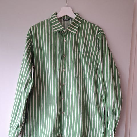 - napinlävestä parsittu iso repeämä, joka kuitenkin jää täysin näkymättömiin paidan ollessa napitettuna