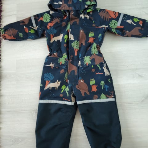 Myydään tummansininen talvihaalari värikkäällä eläinaiheisella kuviolla, koko 98. Haalari on hyvin lämmin ja sopii kylmiin talvipäiviin. Polvissa on hieman kulumaa, muuten hyvässä kunnossa.