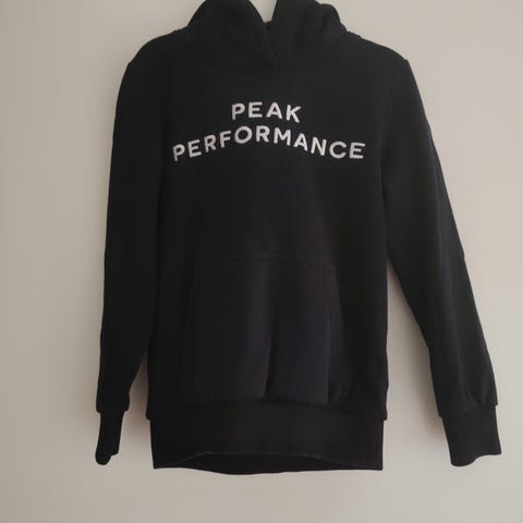 Peak Performancen huppari, sopii 110-116 kokoiselle. Hupparissa kokomerkintä 130, mutta se on pielessä, meidän 125cm tytölle on pieni.