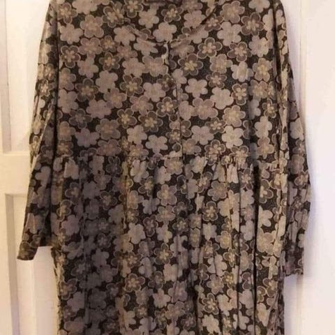 Moitteeton käytetty kunto. Kai-kai 61-62cm, olka-helma 86cm. Kauniit kirjailut.