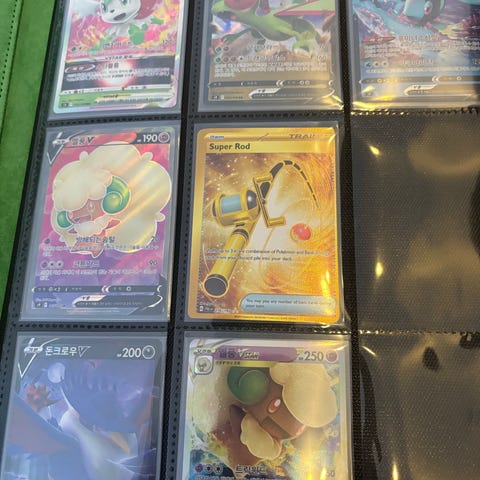 Sisältää 10 binderia melkein täydellisiä settejä, 12 gradetettua korttia ja noin 200 arvokkaampaa yksittäistä korttia toploadereissa unohtamatta duplikaatteja ja suurin osa on sleevattu. Sisältää myös extrana peltipurkkeja, kolikoita, korttilaatikoita, jokunen japanin kielinen kortti ja muuta.