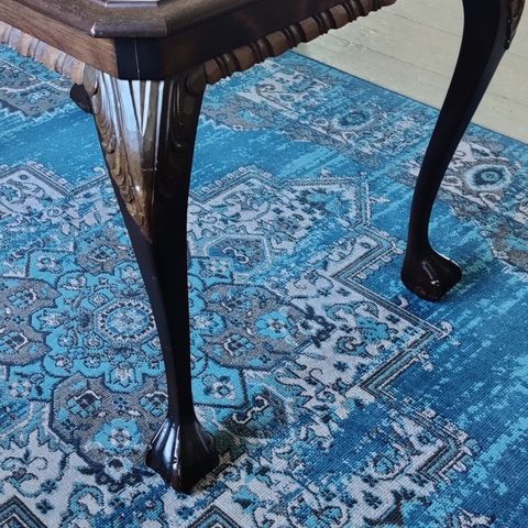Hyväkuntoinen sohvapöytä chippendale tyyliä. Vanhaa tuotantoa arviolta 1970-luvulta.