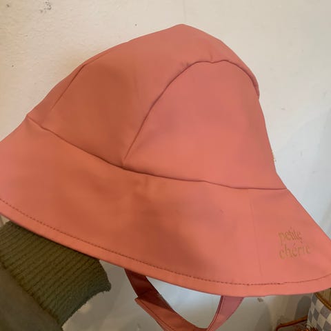 Vuorellinen sadehattu Jonathan -merkiltä. Värinä kirkkaanpunainen. Koko 52cm, eli menee arviolta 2-7 vuotiaalle. Kiristysnauha, jolla saa hatun pysymään vilkkaammankin lapsen päässä. Ei lemmikkejä, tupakointia, tuholaisia tms. Hyväkuntoinen.