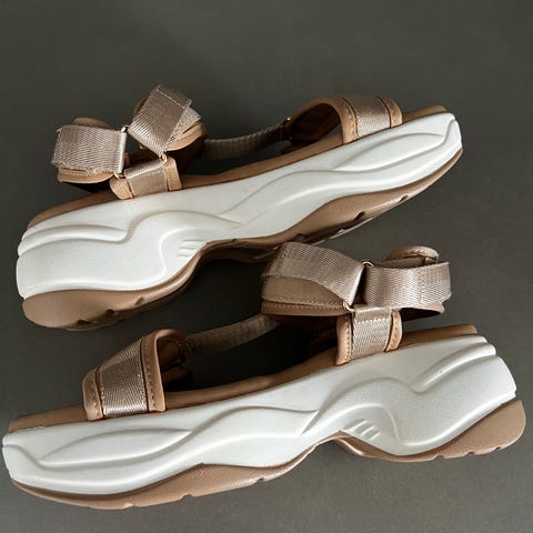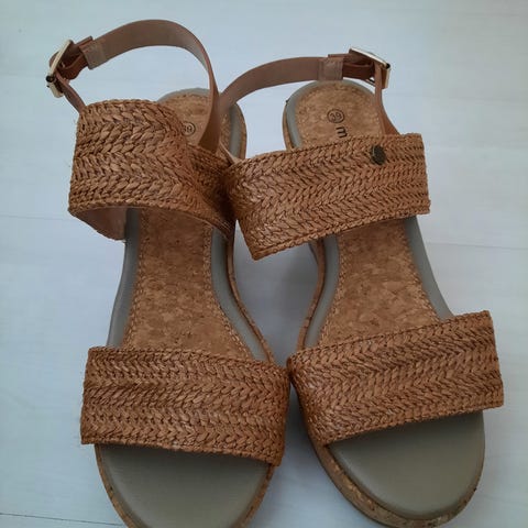 Myydään kunnoltaan kuin uudet beige/korkki värisen naisten korolliset kesäkengät/sandaalit. Olleet lähes täysin käyttämättä ja siksi kunnoltaan virheettömät.