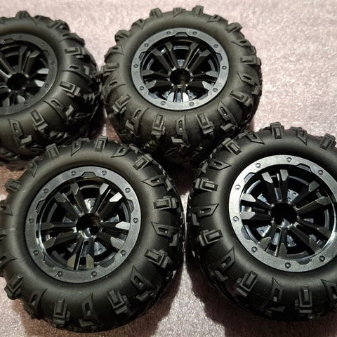 Myynnissä hyväkuntoiset 1/10 rc auton renkaat. Näissä 17mm hexit.