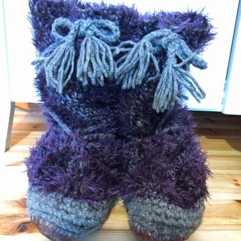 Käsintehdyt huovutetut slippers tossut, väri tummanharmaa, ihanan lämpimät viluvarpaille. Koko 37-38.