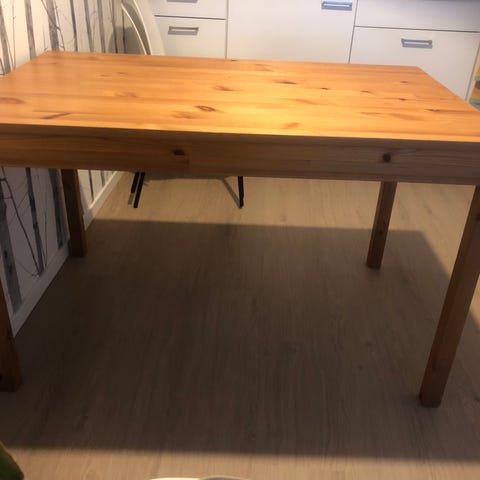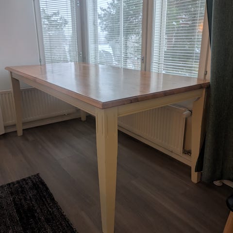Myydään ruskea keittiönpöytä. Käytönjälkiä näkyy, niistä kuvat. Korkeutta en osaa sanoa en pääse mittaamaan pöytää. Mutta normaali ruokapöydän korkuinen. Vain nouto Tuusulasta