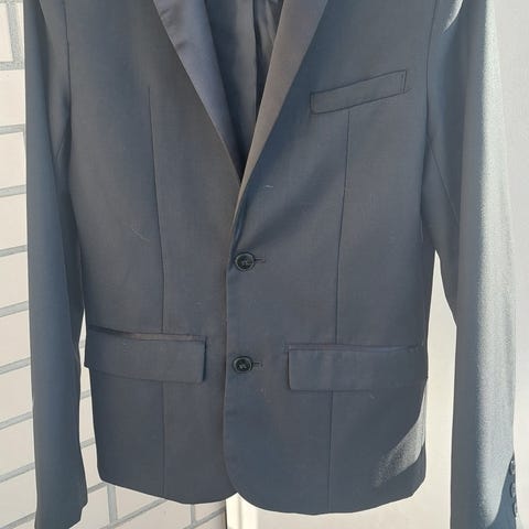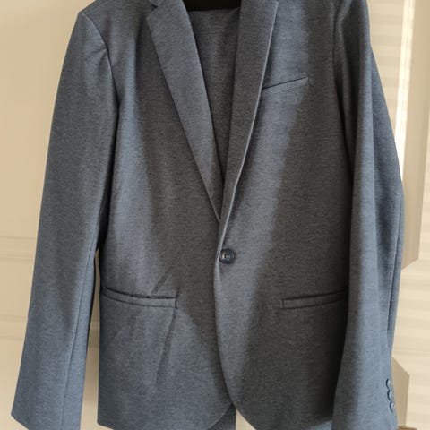 Kerran pidetty havun/metsänvihreä puvuntakki, puvunhousut ja kravatti.
